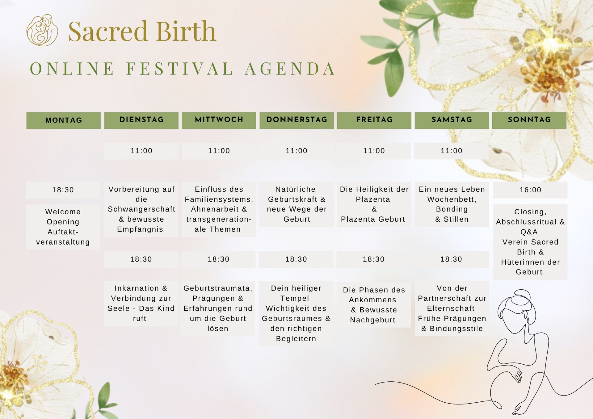Wie der Frühling neues Leben hervorbringt, so trägt jede Frau eine tiefe, ursprüngliche Kraft in sich – die Kraft zu empfangen, zu nähren und Leben in die Welt zu tragen. Das Sacred Birth Frühlingsfestival ist ein Raum, in dem diese Kraft geehrt, genährt und in Gemeinschaft gefeiert wird.